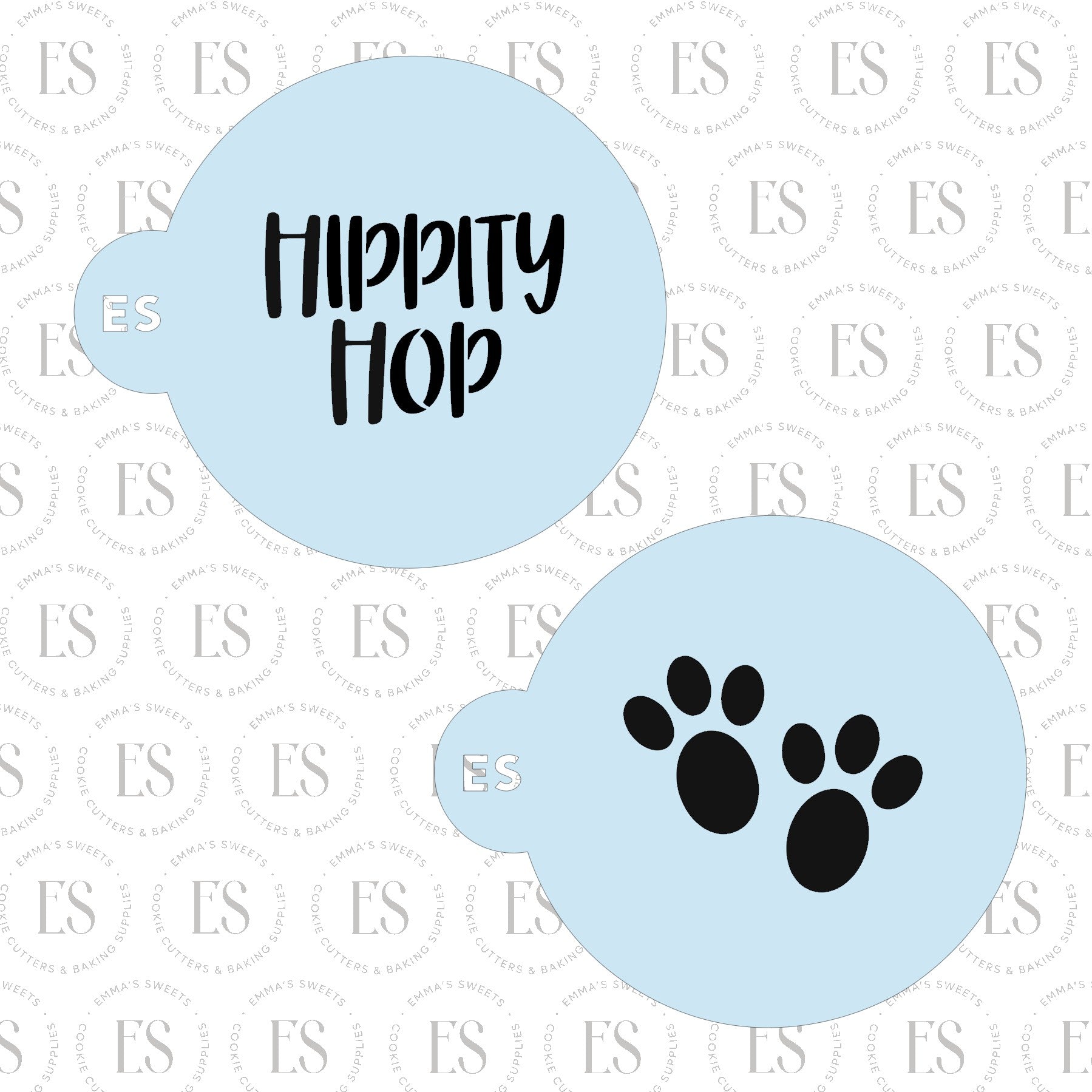 See dropdown for matching cookie cutter for "Hippity Hop and Bunny Prints" stencil